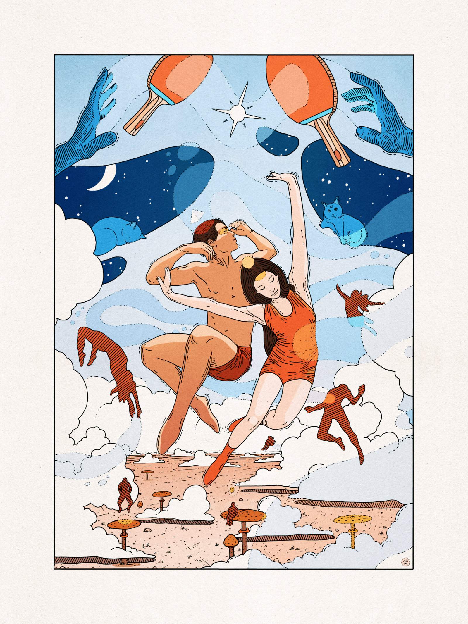 Illustratsioon Erasmus+ ja Euroopa Solidaarsuskorpuse agentuuri noorteprogrammide keskusele. Teos on teemaatiliselt seotud programmiga “Euroopa noorte eesmärgid kunstis” ja sellel teemal läbiviidud veebiaruteluga.