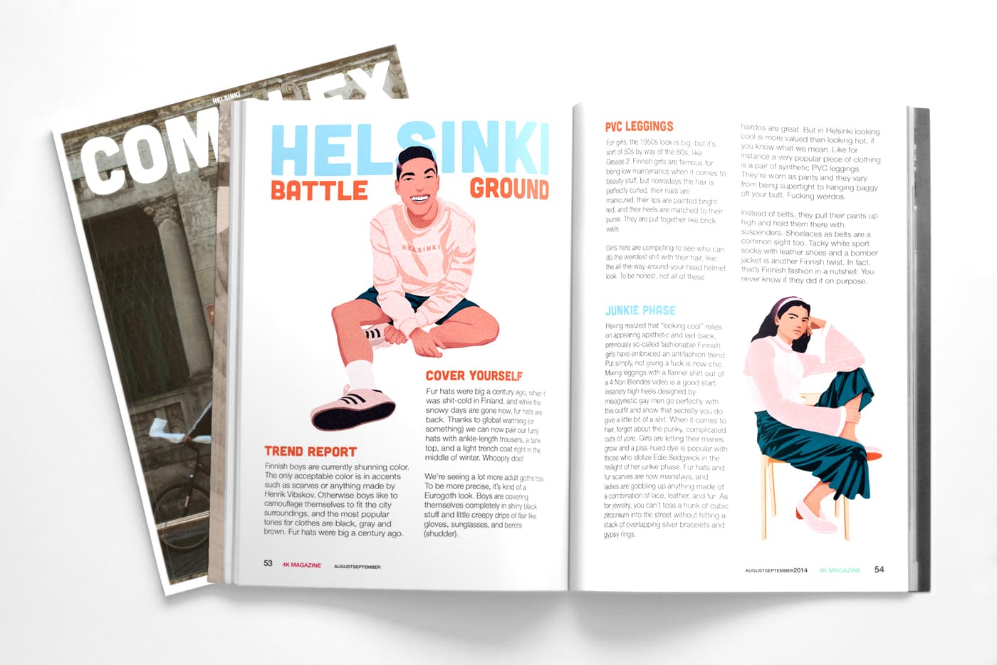 Sadamaillustratsiooni juures kasutasin kirkaid ja kontrasti pakkuvaid värve, mis annavad edasi värskust ja karget põhjamaa meeleolu. Inimeste puhul oli eesmärgiks kujutada neid chillilt.